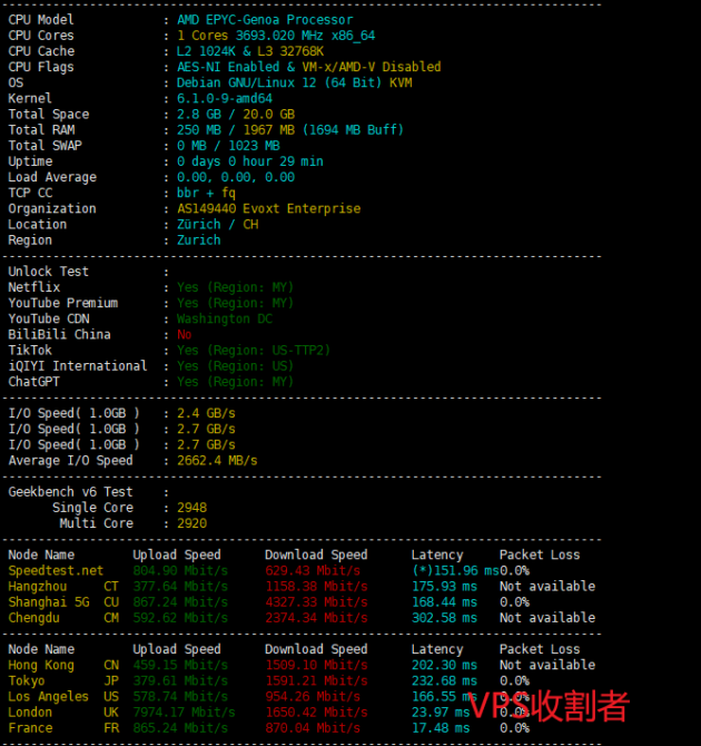 Evoxt 瑞士苏黎世 VPS superbench 测试