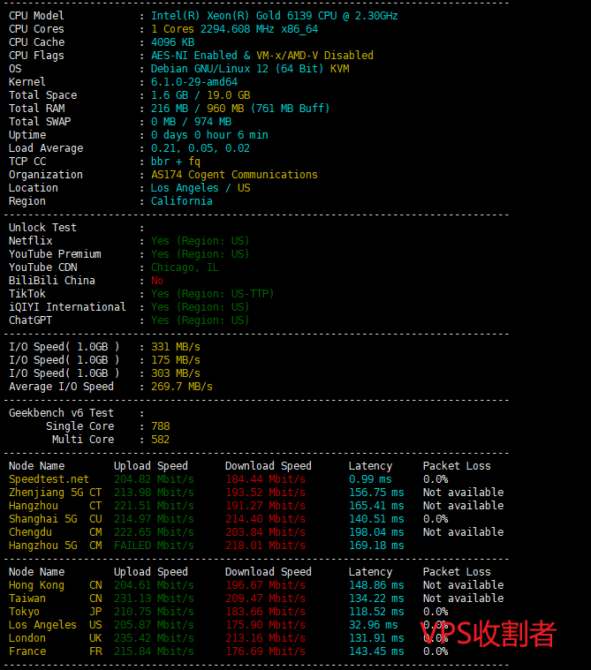六六云美国9929线路双ISP IP VPS服务器测试记录