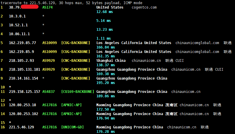 六六云美国9929线路双ISP IP VPS服务器茂名联通回程路由
