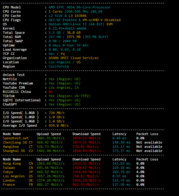 DMIT美国洛杉矶Tier 1 AN4 VPS服务器superbench