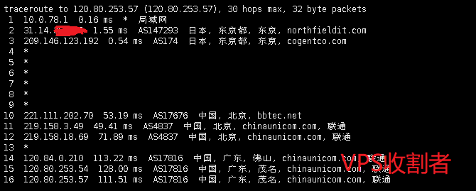 | 4 | 120.80.253.101 | 中国广东茂名 chinaunicom.com 联通 | AS17816 | 1.6 / 1.6 / 1.9 |