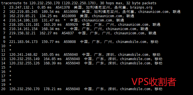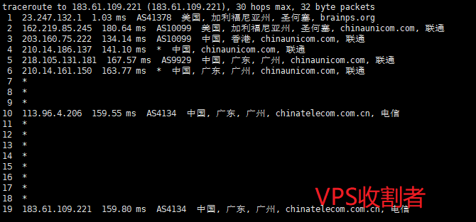 | 10 | 219.158.116.238 | 美国加利福尼亚州圣何塞 chinaunicom.com 联通 | AS4837 | 216.5 / 219.9 / 220.6 |
