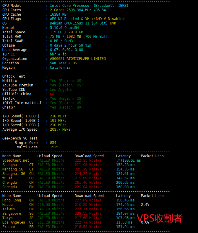 YuumiCloud 美西圣何塞9929高防VPS套餐测试,配置详情:2核/2G内存/30G SSD硬盘/1*IPv4 IP/200Mbps带宽/1T流量/KVM虚拟化。本站获得一台作为评测,进行三网延迟、国内方向网速和性能等简单测试。