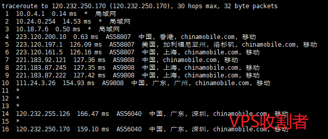 1 120.232.250.170 中国广东深圳 chinamobile.com 移动 AS56040 0.1 / 0.1 / 0.1