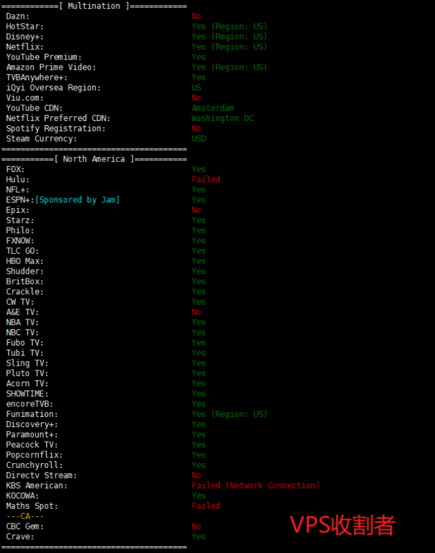 根据检测Netflix、Disney+和YouTube Premium等绝大部分是解锁的,并且准确识别为美国,非常美丽。