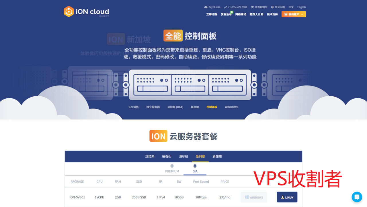 | ION-ST01 | 1vCPU/2G/25G SSD | 10Mbps | 250G/月 | $35/月 | Linux |