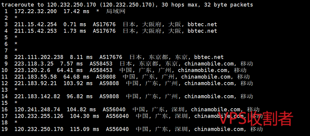 | 5 | 120.196.199.181 | 中国广东广州 chinamobile.com 移动 | AS56040 / AS9808 | 17.1 / 17.3 / 19.4 |