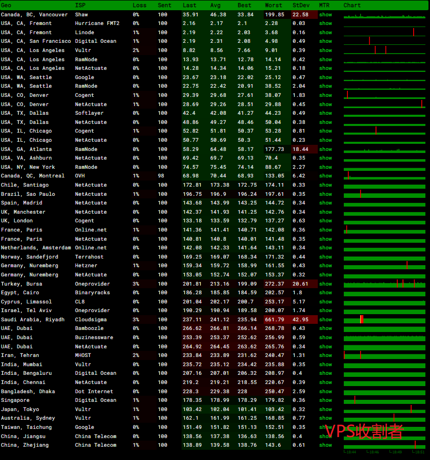 | 14 | 154.22.*.* | 美国加利福尼亚州圣何塞 cogentco.com | * | 163.6 / 170.9 / 176 |
