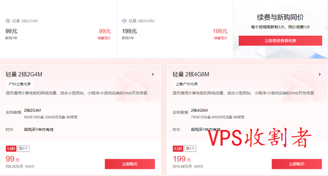 轻量新购续费同价99元/年起,已保有本专区实例的用户可直接续费,每个配置限优惠续1次