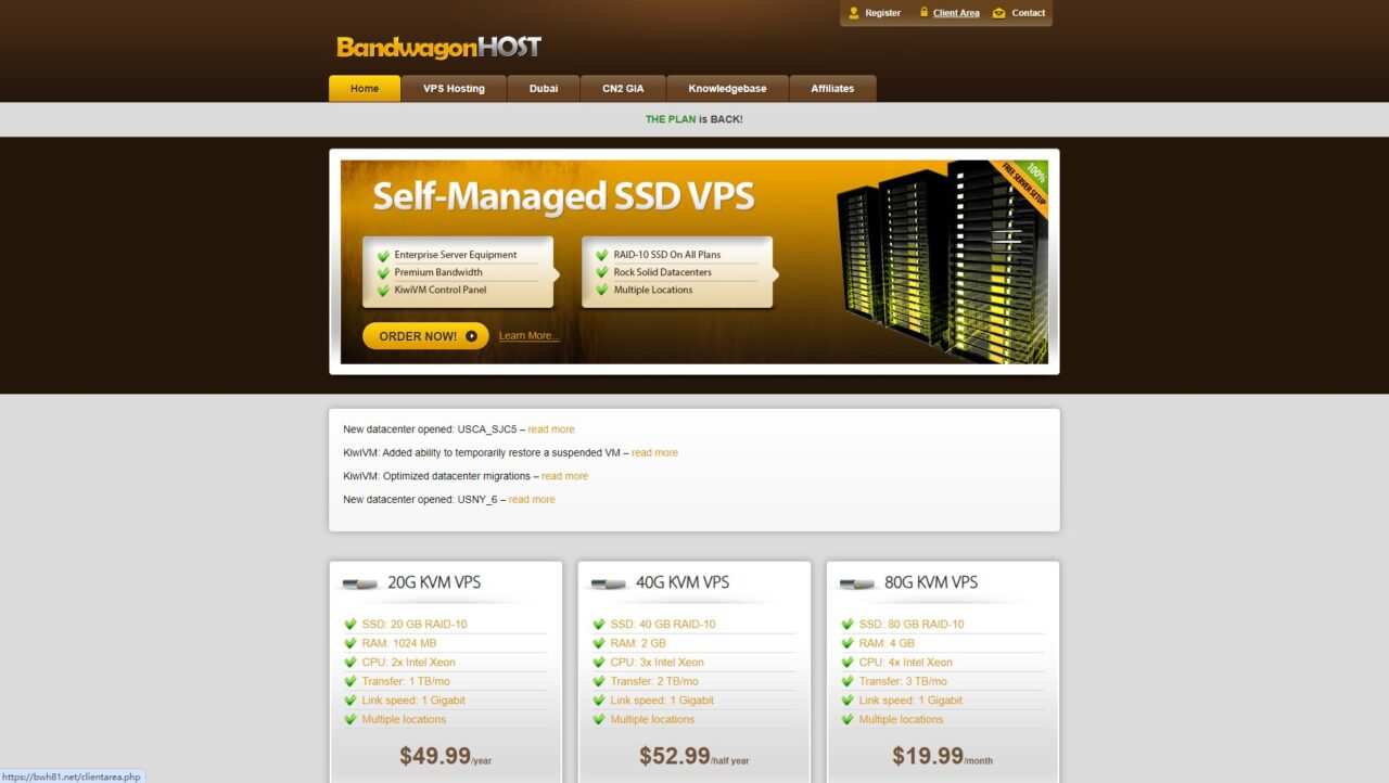 搬瓦工 (Bandwagon Host)高性价比套餐:THE PLAN限量版回归,使用优惠码BWHCGLUKKB优惠后$27/季,配置为:2C2G/40G SSD/1T流量/2.5Gbps带宽,可选香港CMI、美西DC6 CN2 GIA-E/DC9 CN2 GIA、日本软银、荷兰9929、迪拜和悉尼等18个对国内优化的高级线路机房。