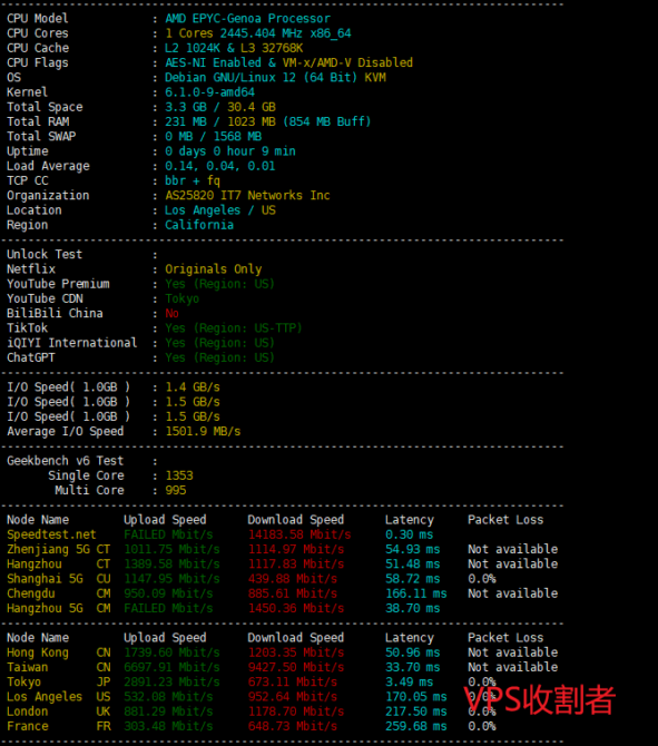 搬瓦工日本东京DC39机房VPS服务器器测试