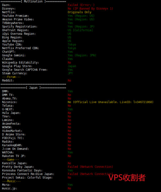 搬瓦工日本东京DC39机房VPS服务器流媒体解锁测试