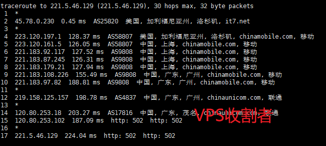 | 11 | 221.183.92.118 | 中国上海 chinamobile.com 移动 | AS9808 | 37.8 / 41.1 / 43.5 |