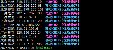 | 西南地区 | 四川成都联通 175ms | 西藏拉萨联通 214ms | 193ms |