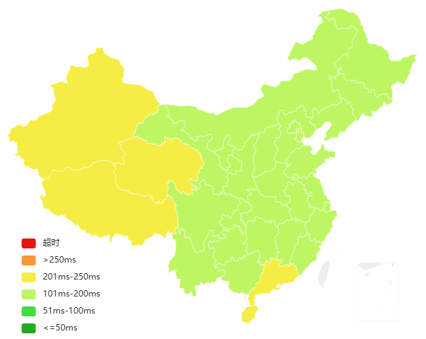 | 西北地区 | 宁夏银川联通 168ms | 新疆乌鲁木齐联通 226ms | 191ms |