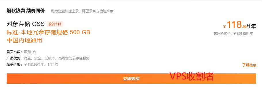 阿里云99计划,中国境内对象存储OSS 500GB仅需¥118.99/1年,新老用户均可购买