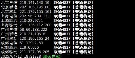 | 东北地区 | 吉林长春移动 193ms | 黑龙江哈尔滨移动 224ms | 211ms |