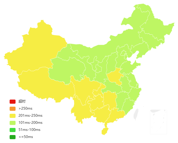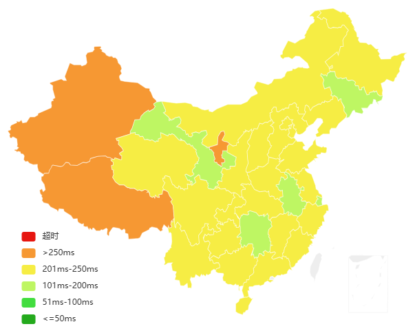 | 西北地区 | 甘肃兰州移动 199ms | 新疆乌鲁木齐移动 278ms | 239ms |
