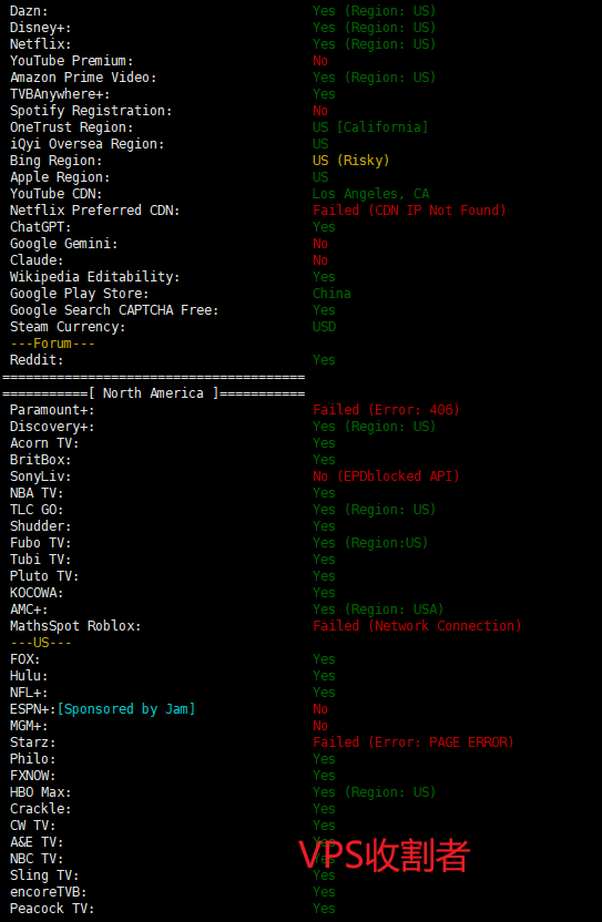 丽萨主机美国4837双ISP VPS套餐测试记录,三网速度、延迟和流媒体解锁情况