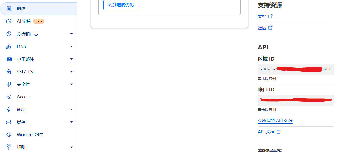 切换到概述页面,在右下角找到并复制 API - 区域 ID