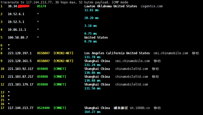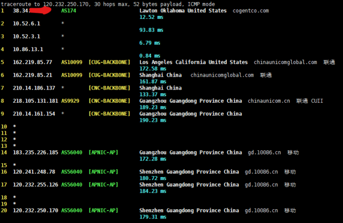 | 16 | 154.24.31.138 | 美国加利福尼亚州洛杉矶 cogentco.com | AS174 | 183.4 / 183.5 / 185.9 |