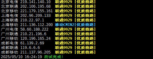 | 华中地区 | 湖北武汉联通 153ms | 湖南益阳联通 154ms | 153ms |