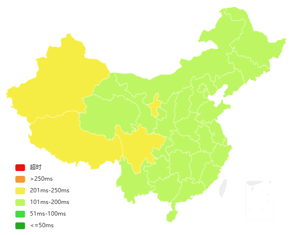 | 西北地区 | 陕西西安移动 185ms | 新疆乌鲁木齐移动 250ms | 209ms |
