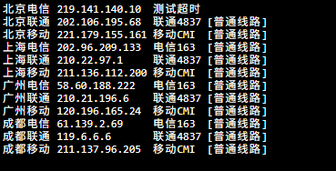 | 东北地区 | 辽宁大连联通 170ms | 吉林松原联通 179ms | 173ms |