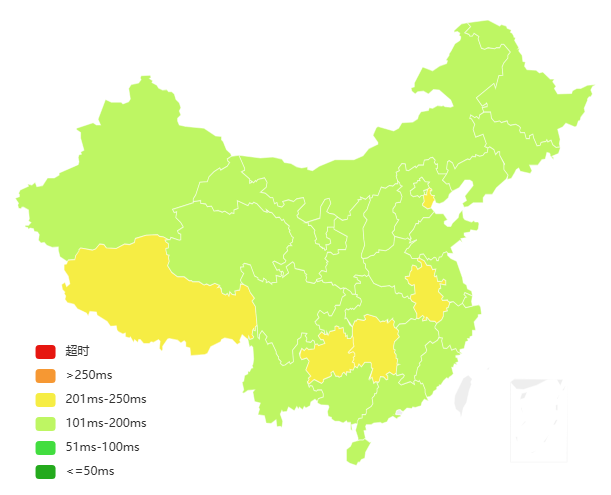 | 西北地区 | 宁夏银川移动 222ms | 新疆乌鲁木齐移动 339ms | 270ms |
