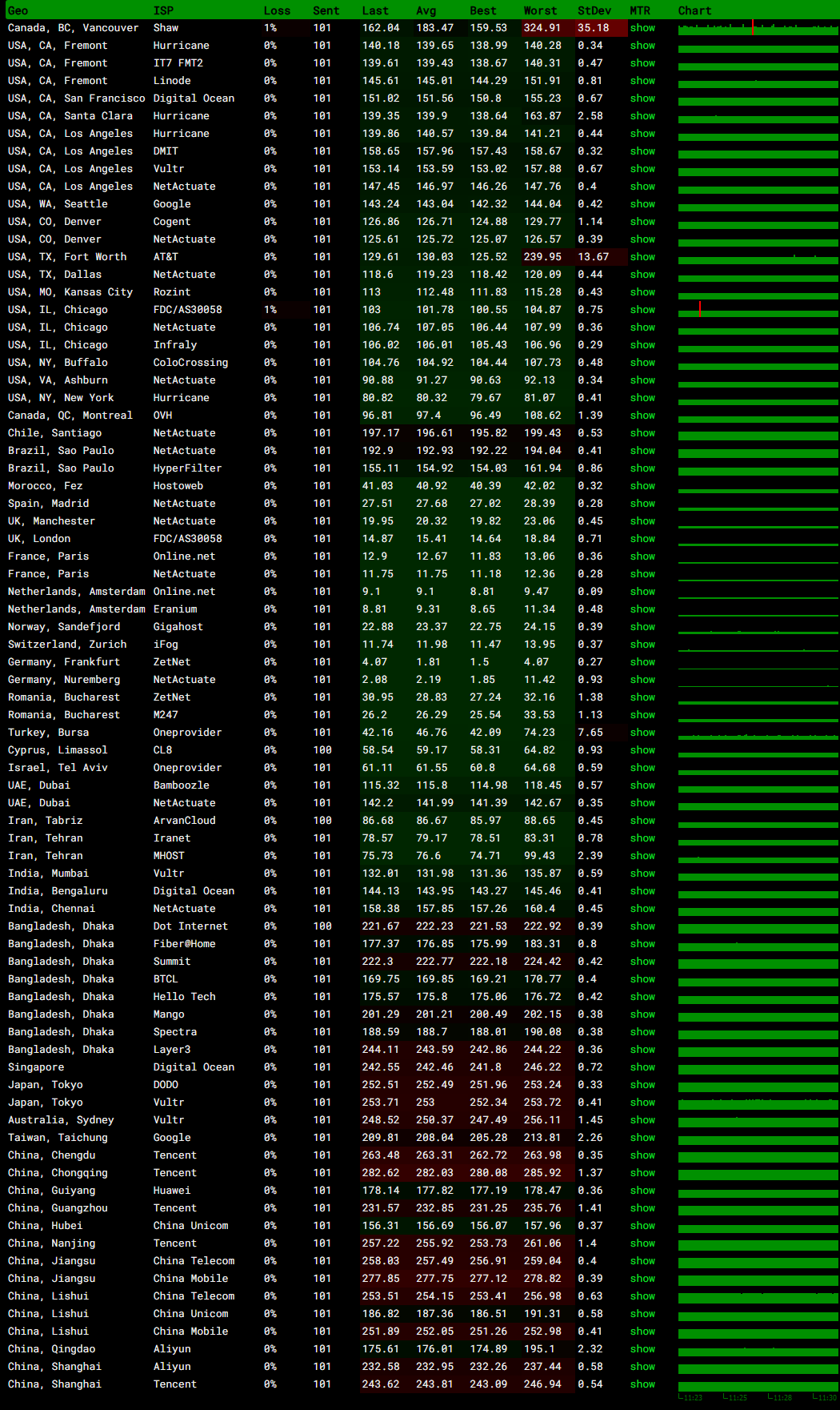 | 15 | 62.115.140.156 | 美国加利福尼亚州洛杉矶 telia.com | AS1299 | 163.7 / 163.7 / 164 |