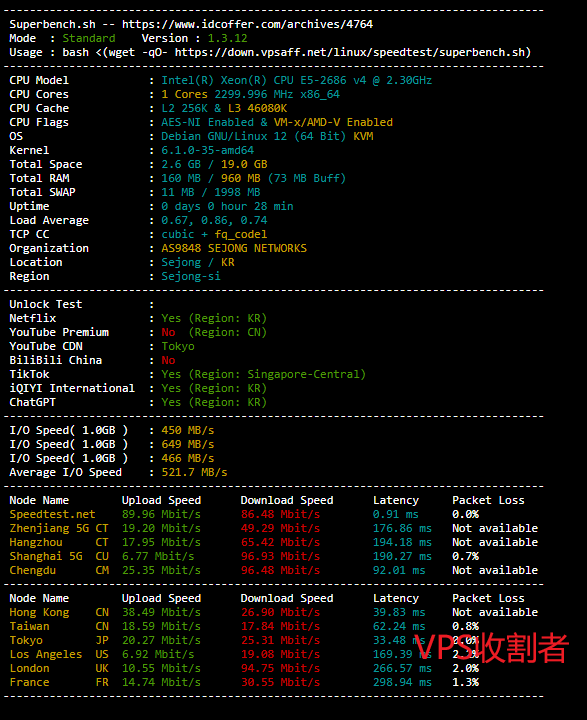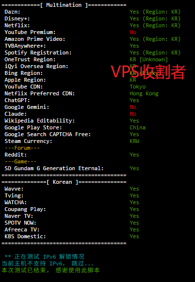 丽萨主机韩国双ISP家庭宽带静态住宅原生IP VPS套餐测试记录,三网速度、延迟和流媒体解锁情况