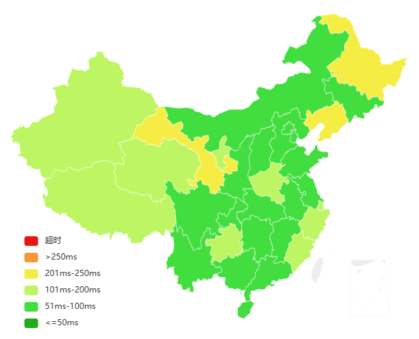 | 西南地区 | 贵州贵阳联通 216ms | 西藏拉萨联通 234ms | 223ms |