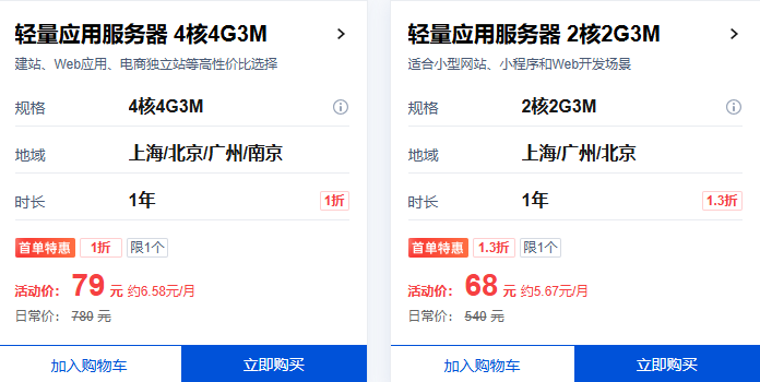 腾讯云2025年上云采购,国内北京、上海、广州和南京地区轻量4核大算力,新用户低至79元/年,另有