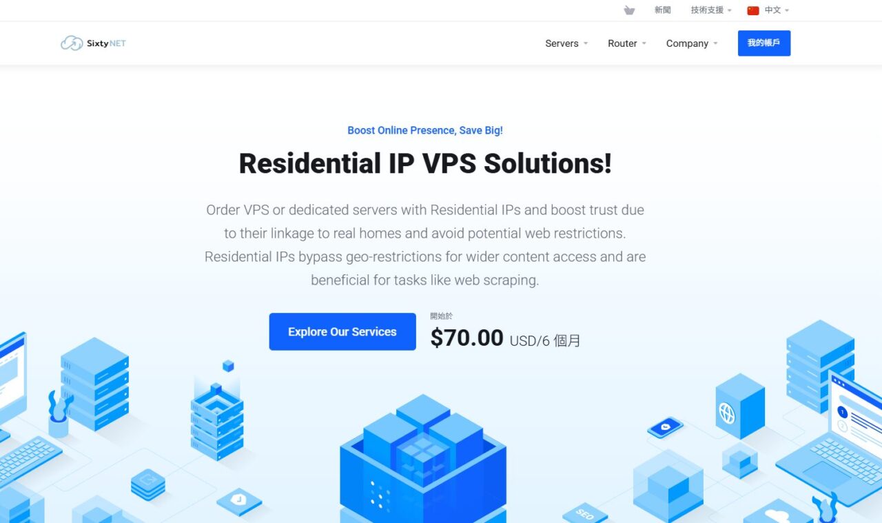SixtyNet美国洛杉矶住宅IP VPS,双ISP IP,CN2 GIA+CMI回程,适合TikTok和Facebook等业务