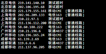 | 西南地区 | 贵州贵阳联通 25ms | 西藏拉萨联通 59ms | 36ms |