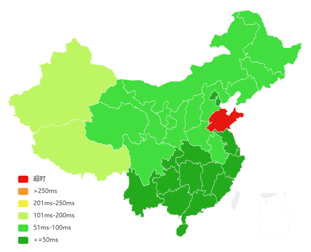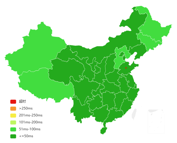 | 华北地区 | 北京移动 43ms | 河北承德移动 65ms | 55ms |