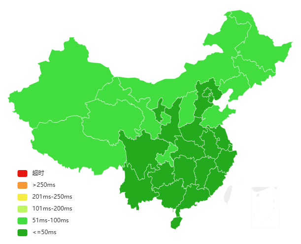 | 西北地区 | 陕西西安移动 61ms | 新疆乌鲁木齐移动 101ms | 73ms |