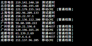 | 华东地区 | 安徽合肥联通 39ms | 福建福州联通 79ms | 53ms |