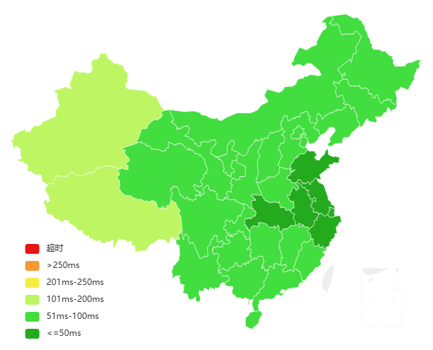 | 西北地区 | 陕西西安移动 70ms | 新疆乌鲁木齐移动 101ms | 80ms |