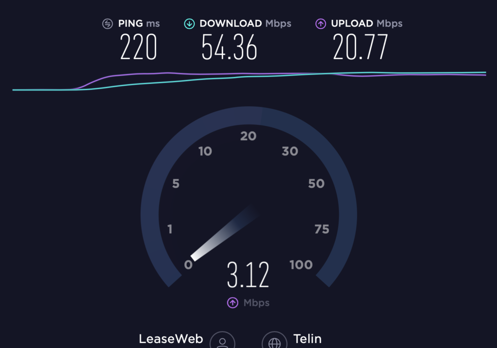 广州电信200M宽带测速,SpeedTest的速度能缓慢爬升到54M,让我很意外,本以为也就10M左右,油管在1000~2w之间徘徊,非常不稳定。相信大家都关注到了,香港原生IP,没错,原生IP!但是非常遗憾它并不能解锁任何流媒体!!!