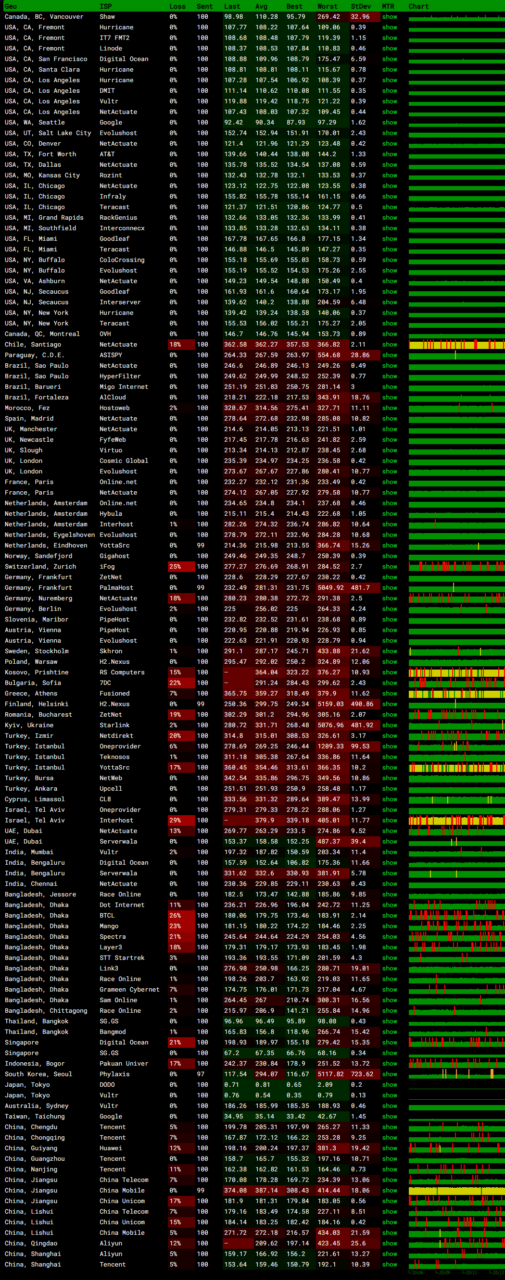 [0;33m Los Angeles US [0;32m184.39 Mbit/s [0;31m167.94 Mbit/s [0;36m109.01 ms [0m0.0%