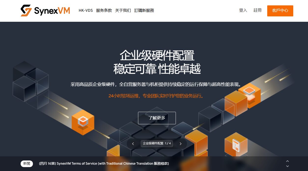 SynexVM香港1G无限流量HKT VDS,$89/月,香港原生IP,支持支付宝和usdt支付