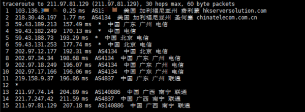广西南宁联通回程路由