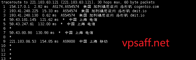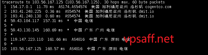 跳数IP地区(仅供参考)AS号(仅供参考)时间(毫秒)