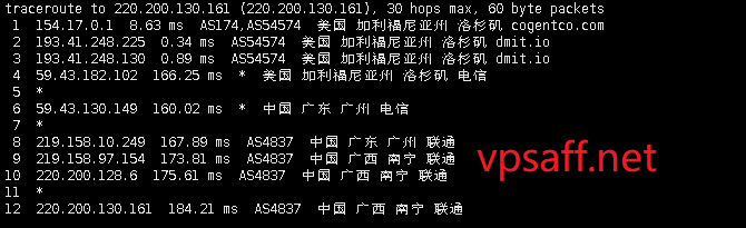 DMIT美国洛杉矶sPro系列广西南宁联通回程