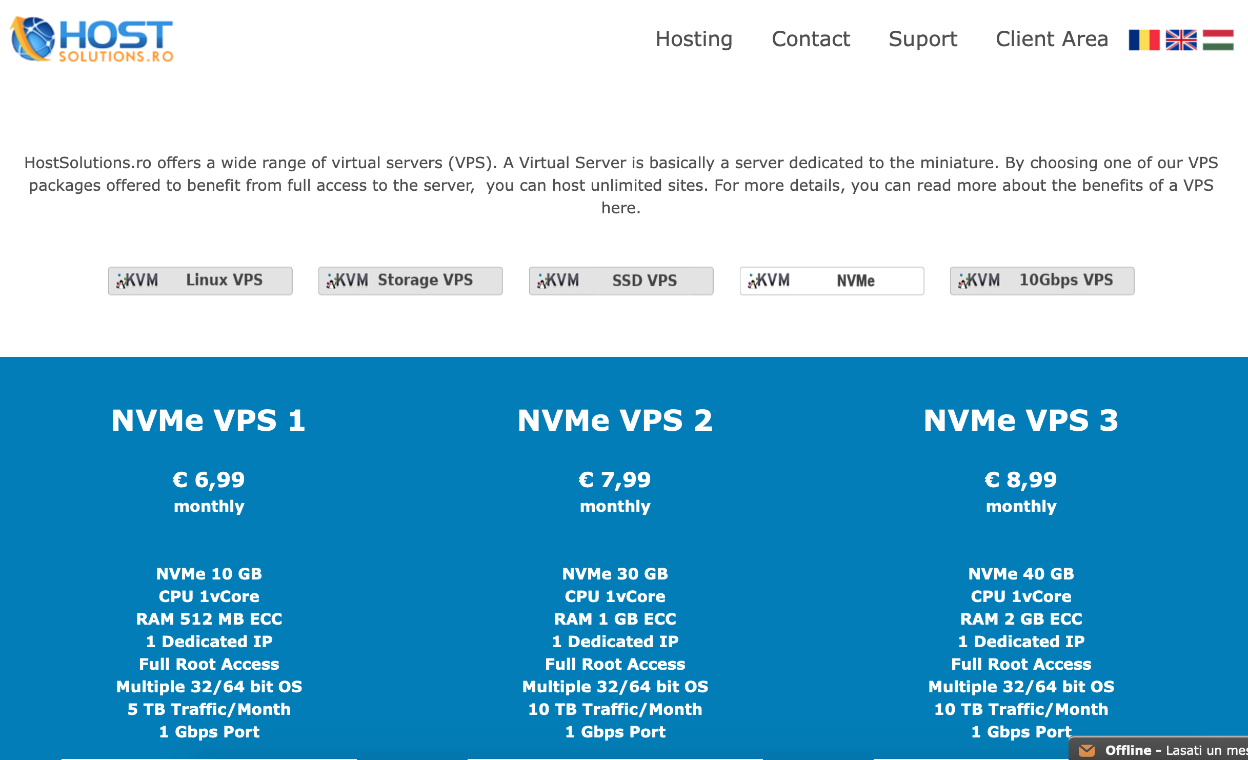 HostSolutions.ro 以无抗诉,无视版权出名,老板人称“香水哥",今日在LET上发布了offer,罗马尼亚布加勒斯特NVMe VPS 5折循环优惠促销活动。