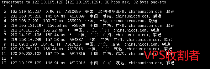 | 1 | 122.13.195.129 | 中国广东茂名 chinaunicom.com 联通 | AS17816 | 8.4 / 3.1 / 3 |
