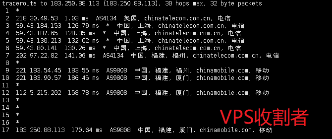| 1 | 183.250.88.113 | 中国福建厦门 chinamobile.com 移动 | AS9808 | 2 / 3.2 / 1.7 |