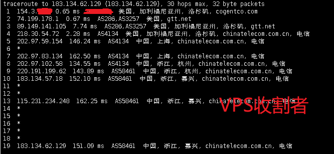 | 15 | 154.3.*.* 38.142 .*.* 38.142 .*.* | 美国加利福尼亚州洛杉矶 cogentco.com 美国加利福尼亚州洛杉矶 cogentco.com 美国加利福尼亚州洛杉矶 cogentco.com | * | 190.8 186.4 186 |