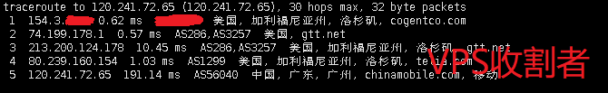 | 11 | 38.104.85.161 38.104.85.161 38.88.224.161 | 美国加利福尼亚州洛杉矶 cogentco.com 美国加利福尼亚州洛杉矶 cogentco.com 美国加利福尼亚州圣何塞 cogentco.com | AS174 AS174 AS174 | 259.3 259.1 256.8 |